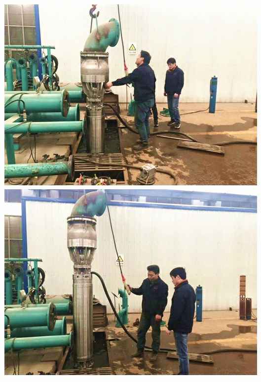 流量1200立方、杨程18米的不锈钢304材质潜水泵测试合格